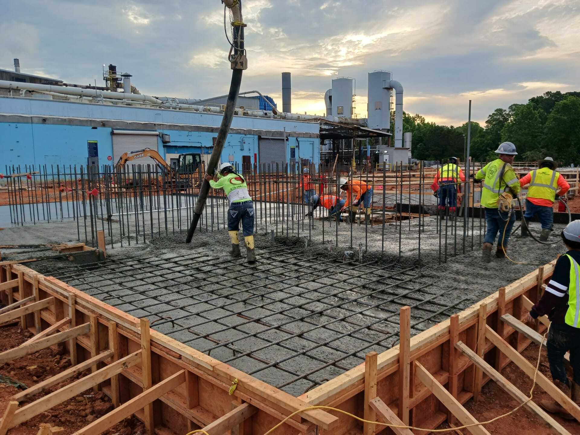 Rite-Way Foundations completed a 60,000 SF Expansion Project for an American Industrial Aluminum Customer outside of Augusta, GA. The scope of work consisted of 600 tons of rock, 140 tons of rebar, 400+ feet of pit walls, and over 3,000 cubic yards of placed concrete. The work also included several equipment pedestals with a substantial amount of embed plates to support the engineered process equipment.