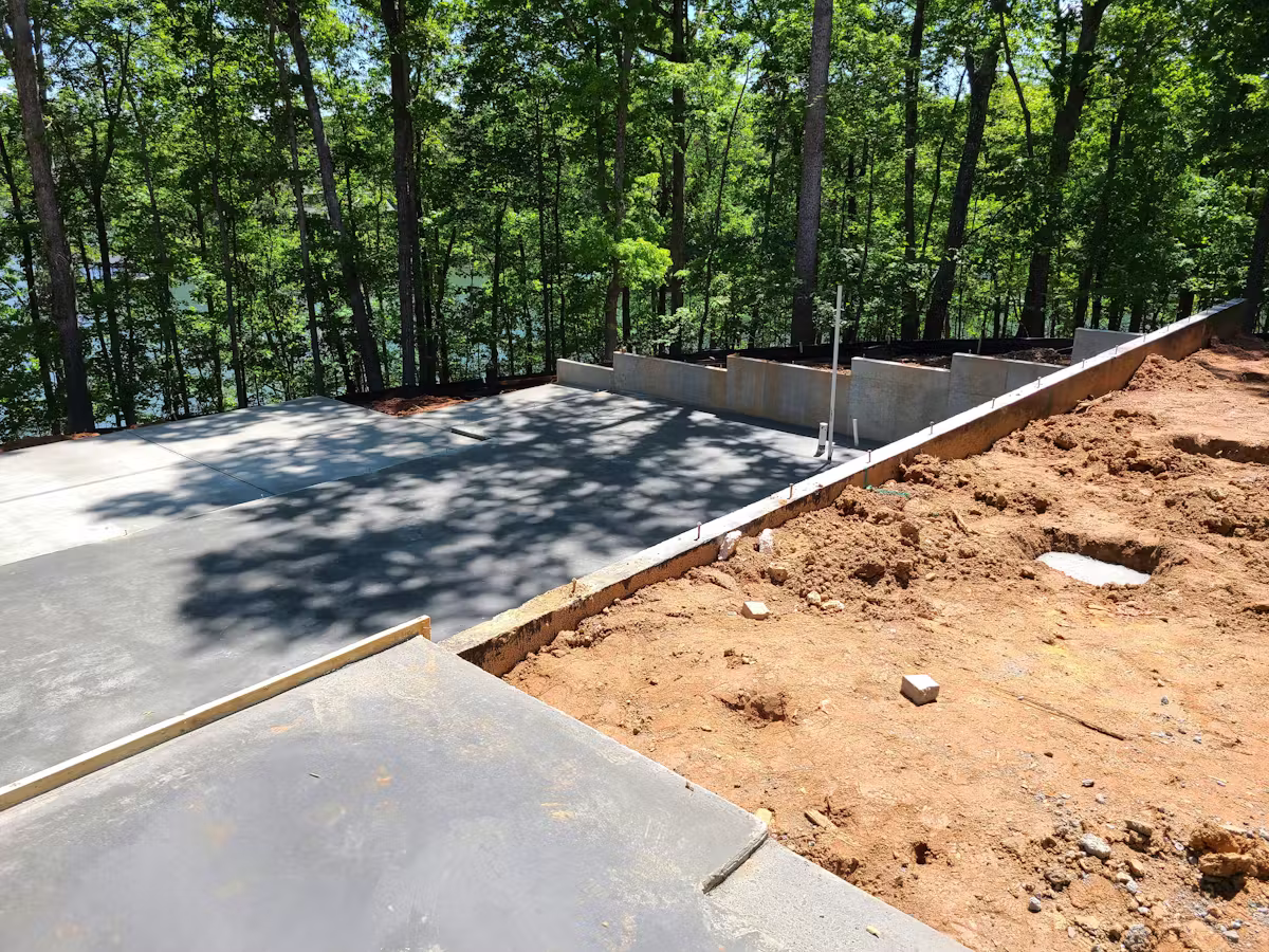 Rite-Way completed the project turnkey. This great lot on Lake Lanier required our grading team to handle all the clearing and excavation for the basement walls and foundations. The basement walls were cast-in-place by one of our many talented wall crews and the flatworks division poured the slab on grade.